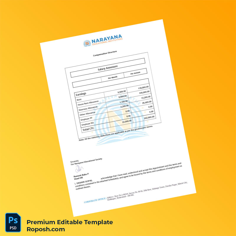 Don’t let employment confirmation hurdles slow down your professional progress. Purchase the India Narayana Educational Society Employment Verification Letter Word & PDF Template today and experience the convenience of a fully editable, customizable, and reliable job confirmation document. Simplify your paperwork and ensure your employment status is verified promptly and accurately.