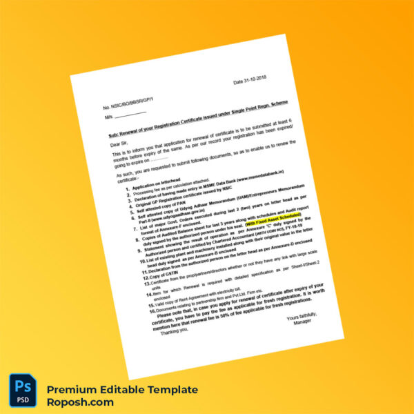 Streamline Your Business Registration Renewal with an Editable India NSIC Renewal Notice Template
