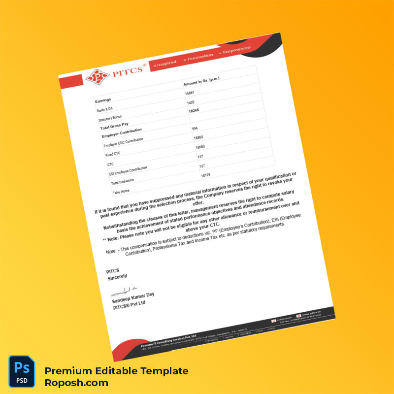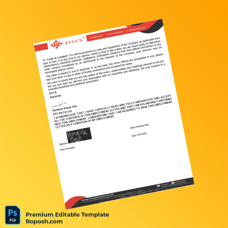 Take control of your documentation tasks today with this India PITCS Appointment Letter Word & PDF Template — your fast, reliable, and fully editable HR document solution.
