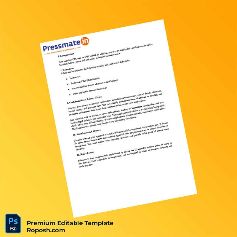 Don’t let employment verification slow you down. Invest in the India Pressmate Employment Verification Letter Word & PDF Template to produce fully customizable, professional documents that meet your organizational needs with ease. Download now and experience the confidence of well-prepared employment verification letters tailored precisely to your specifications.