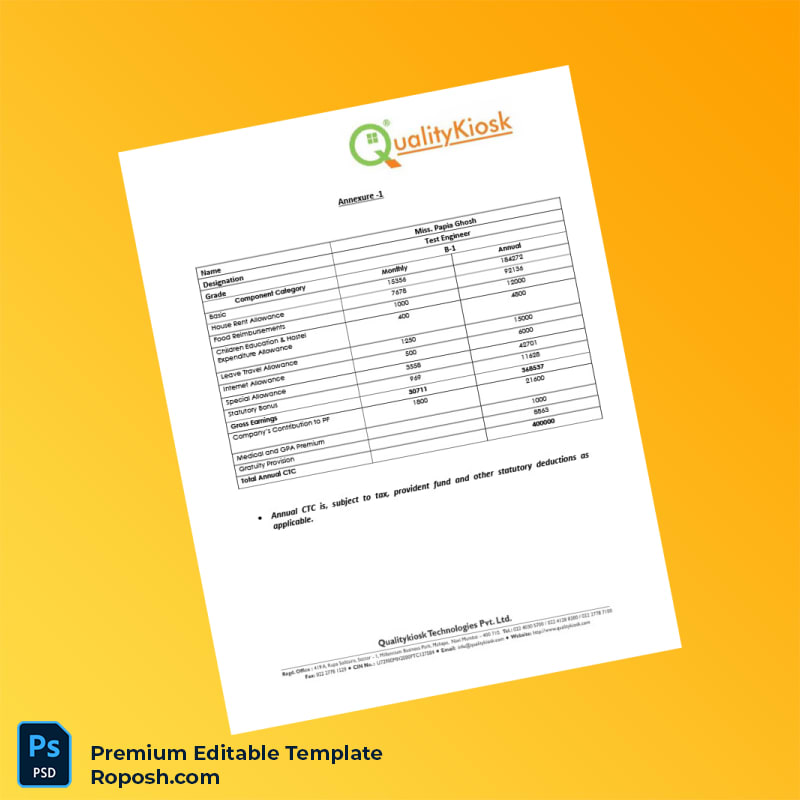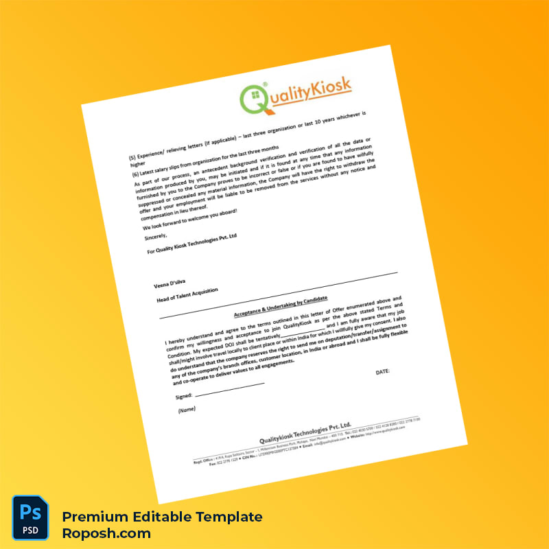 Empower your professional documentation today with the India QualityKiosk Technologies Pvt Ltd Employment Verification Letter Word & PDF Template—your trusted resource for clear, authentic, and editable employment verification templates.