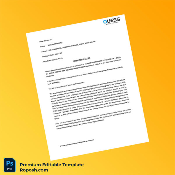 Don’t let administrative hurdles hold you back. Invest in the India Quess Corporation Salary Certificate Word & PDF Template now and gain full control over your employment verification process. With its comprehensive customization options and instant accessibility, you can produce a professional certificate tailored specifically to your job confirmation needs.