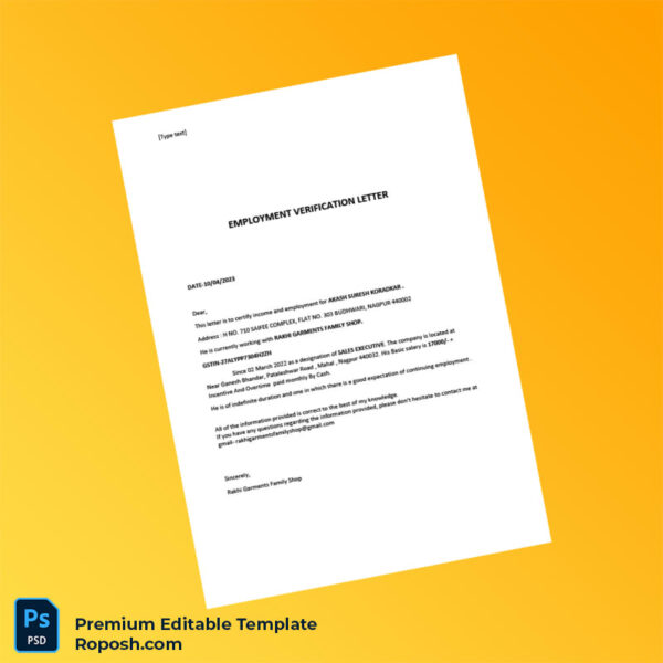 Don’t let bureaucratic delays or unprofessional documentation hinder your business operations. Invest in this India Rakhi Garments Family Shop Employment Verification Letter Word & PDF Template for an effortless, professional approach to employment proof. Download now and customize your employment letters with confidence and speed.