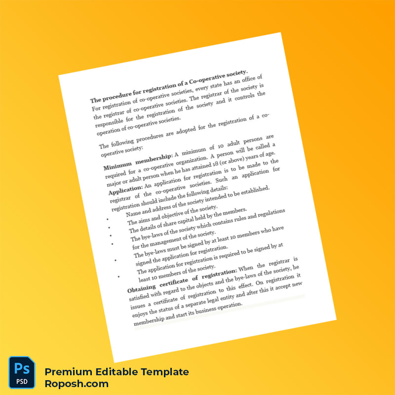 Streamline Your Cooperative Society Registration with a Fully Customizable Template