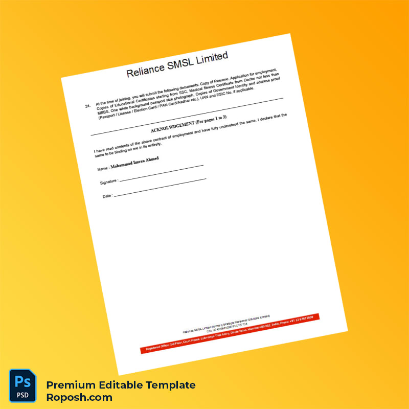 Effortless Employment Verification with India Reliance SMSL Limited Template
