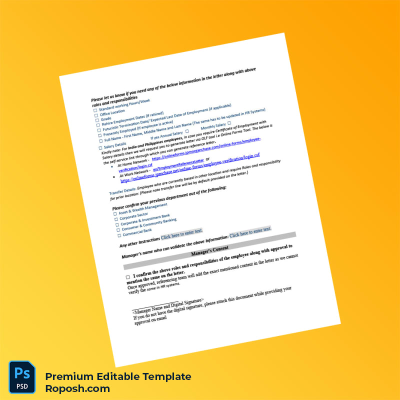 Discover the ultimate solution for your employment verification needs with the India Roles Responsibility Letter Form Word & PDF Template. Designed specifically for HR professionals, employees, and business administrators, this fully editable template allows seamless creation of professional proof of employment letters and job confirmation documents. Whether you need to confirm your employees’ roles or verify employment details for new hires, this customizable template ensures accuracy and professionalism in every letter.