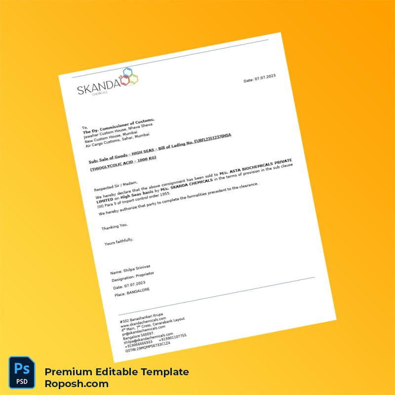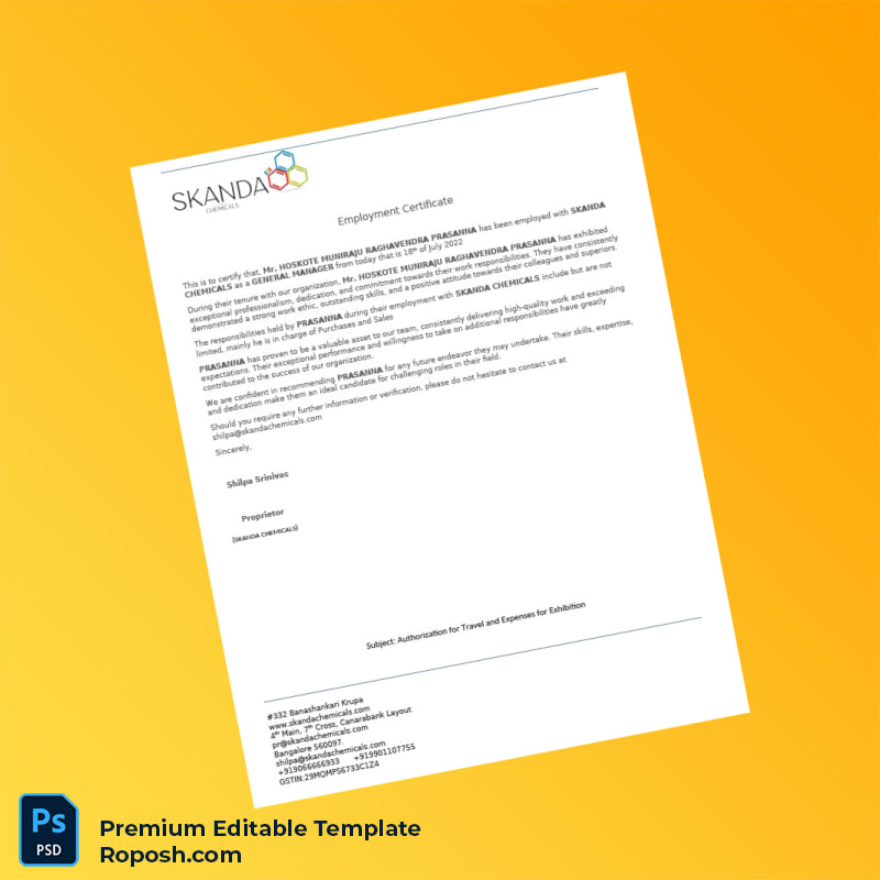 Customizable India Skanda Chemicals Employment Verification Letter Word & PDF Template 4 page