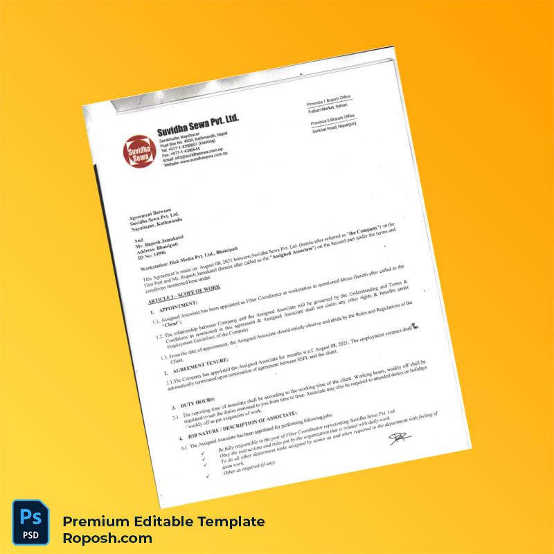 Be the first to review “Customizable India Suvidha Sewa Pvt Ltd Employment Verification Letter Word & PDF Template 6 page”