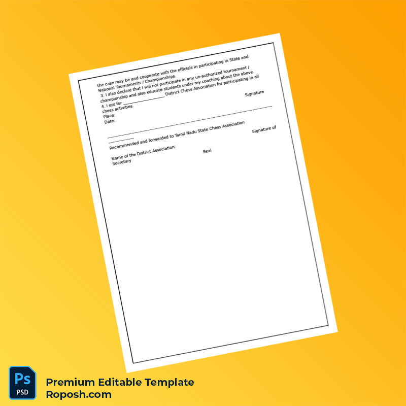 Don’t let paperwork slow down your professional progress. Invest in this customizable India Tamil Nadu State Chess Association Certificate for Chess Coaches template and confidently present official credentials. Click to download now and simplify your registration certificate generation process with a trusted and editable certificate template!