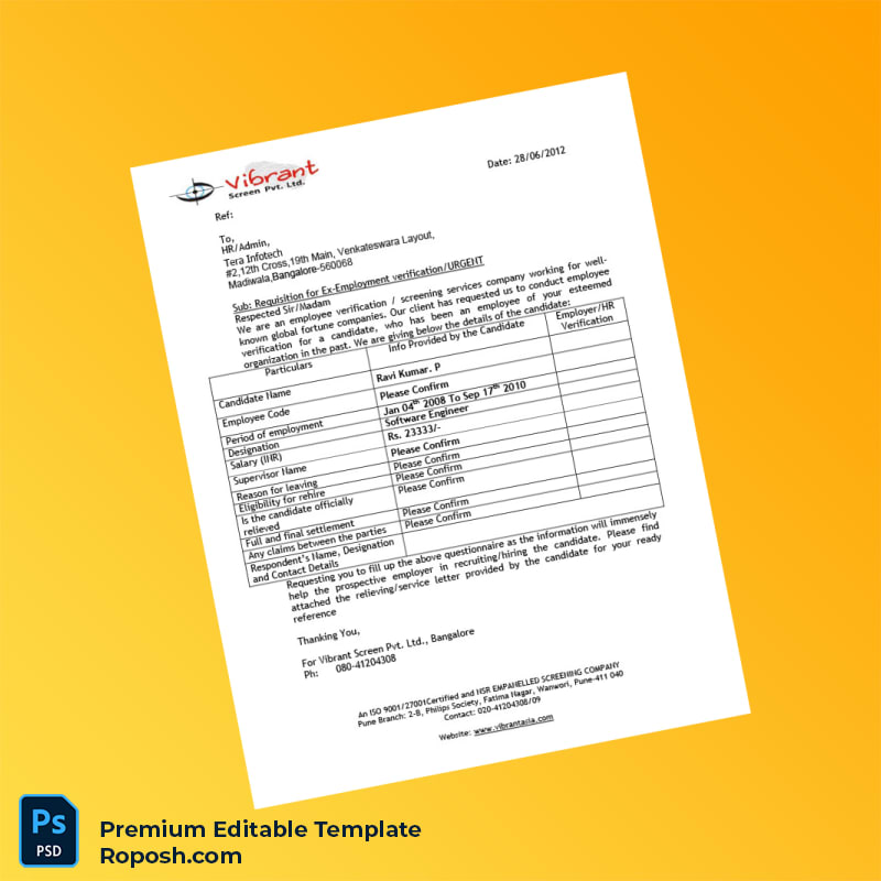 Effortlessly Authenticate Employment with India Tera Infotech Employment Verification Letter Word & PDF Template