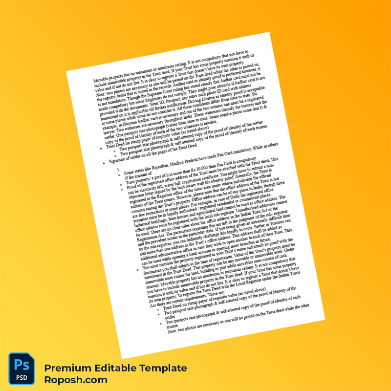 Take control of your trust registration documents with this comprehensive, professionally crafted template. Download your India Trust Authority Registration Certificate Word & PDF Template now and experience the effortless editing and reliable formatting that keeps your business compliant and your documentation flawless.