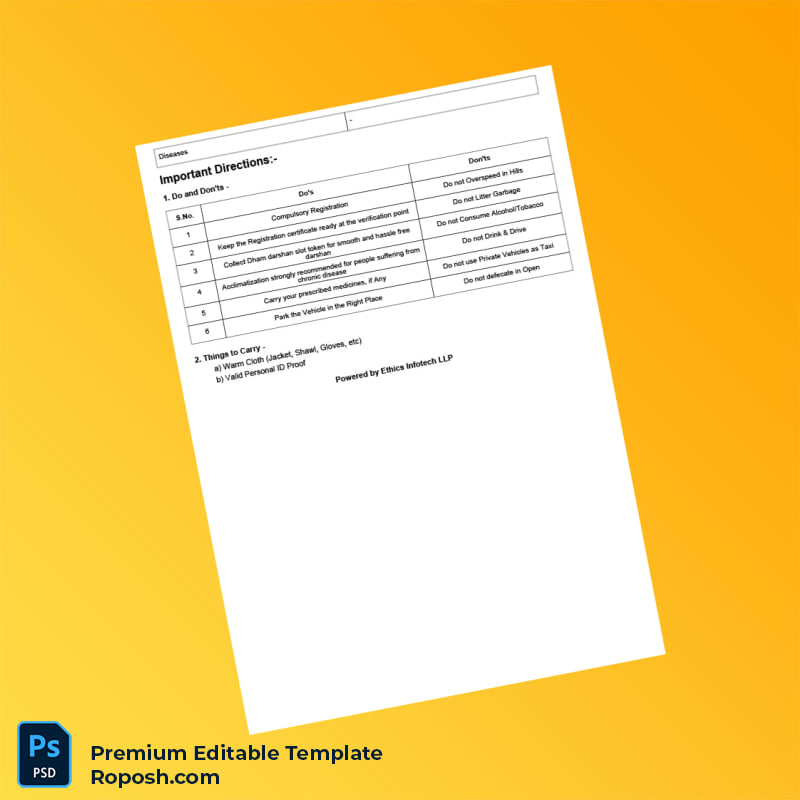 Transform your registration procedures with a customizable India UTDB Yatra Registration Letter template that adapts to your unique needs. Its user-friendly design empowers you to update essential details swiftly while maintaining an official look recognized by regulatory authorities. Don’t settle for generic or outdated certificates. Purchase now and benefit from a digital template designed with your professional success in mind.