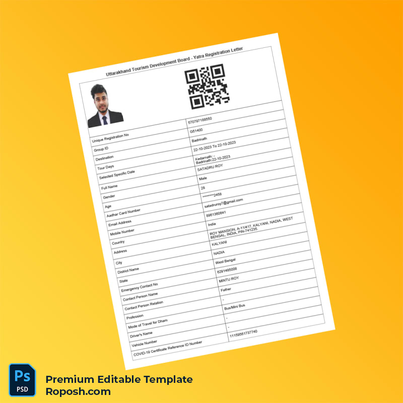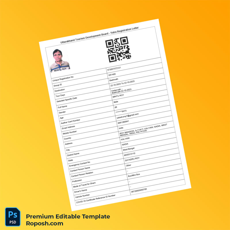 Customizable India UTDB Yatra Registration Letter Word & PDF Template for Seamless Documentation