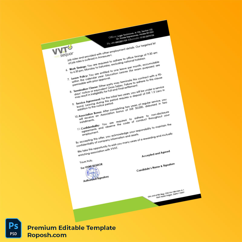 Be the first to review “Customizable India VVNT SeQuor Appointment Letter Word & PDF Template 4 page”