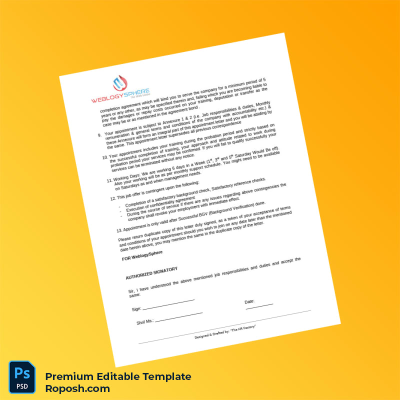 Customizable India WeblogySphere Employment Verification Letter Word & PDF Template 5 page