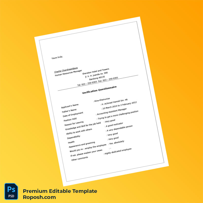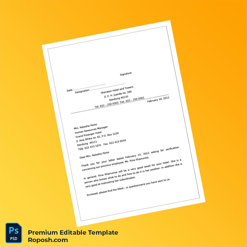 Don’t let the hassle of lost or outdated employment documents slow you down. Secure the Indonesia Grand Preanger Hotel Employment Verification Letter Word & PDF Template today to craft precise and professional verification letters easily. This template is an indispensable tool for HR professionals, employees, and job seekers who value accuracy, efficiency, and credibility in their employment documentation. Click to download and customize your template now to meet your employment verification needs with confidence and professionalism.