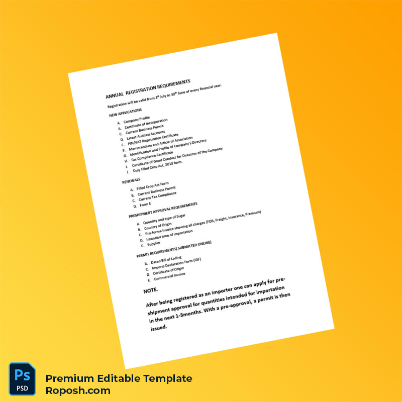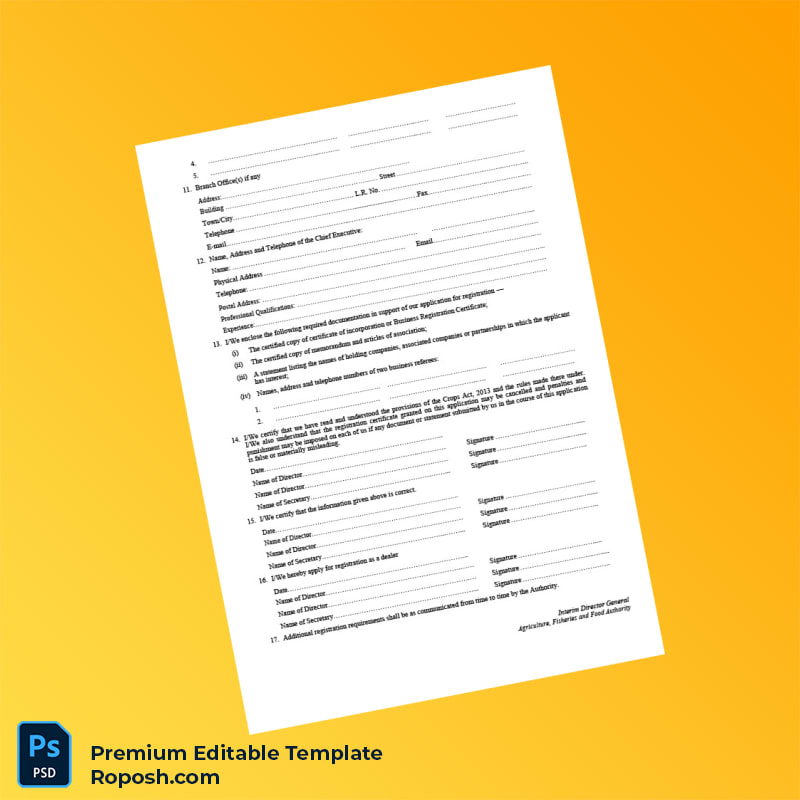 Customizable Kenya Agriculture and Food Authority Business Registration Certificate Editable Word & PDF Template 3 page