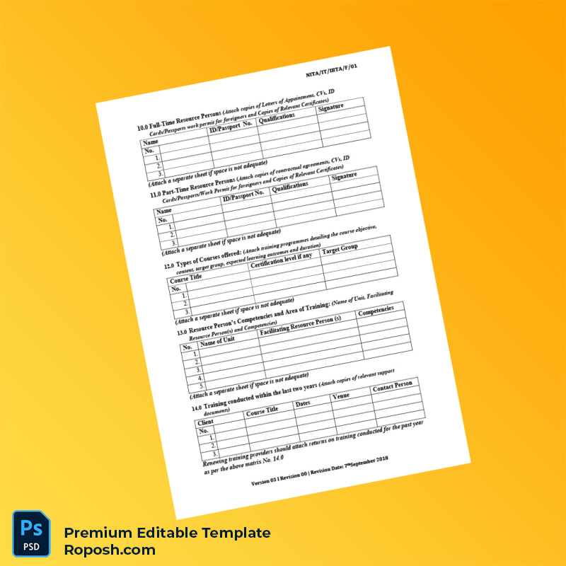 Customizable Kenya National Industrial Training Authority Application Form for Registration and Renewal of Nita Registered Template in Word a 4 page