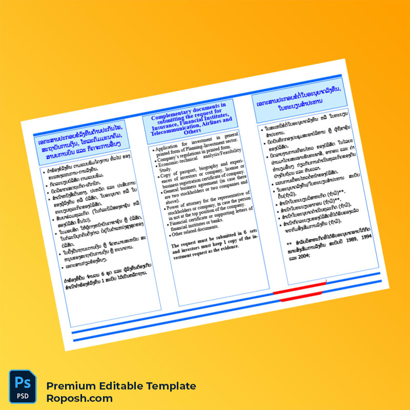 Don’t let lost or outdated certificates disrupt your business operations. Utilize our customizable Laos Investment Promotion Department Registration Certificate Word & PDF Template to ensure your company’s documentation is professional, precise, and promptly available. Secure your copy now and simplify your registration processes with a trusted, editable certificate template designed specifically for your success.