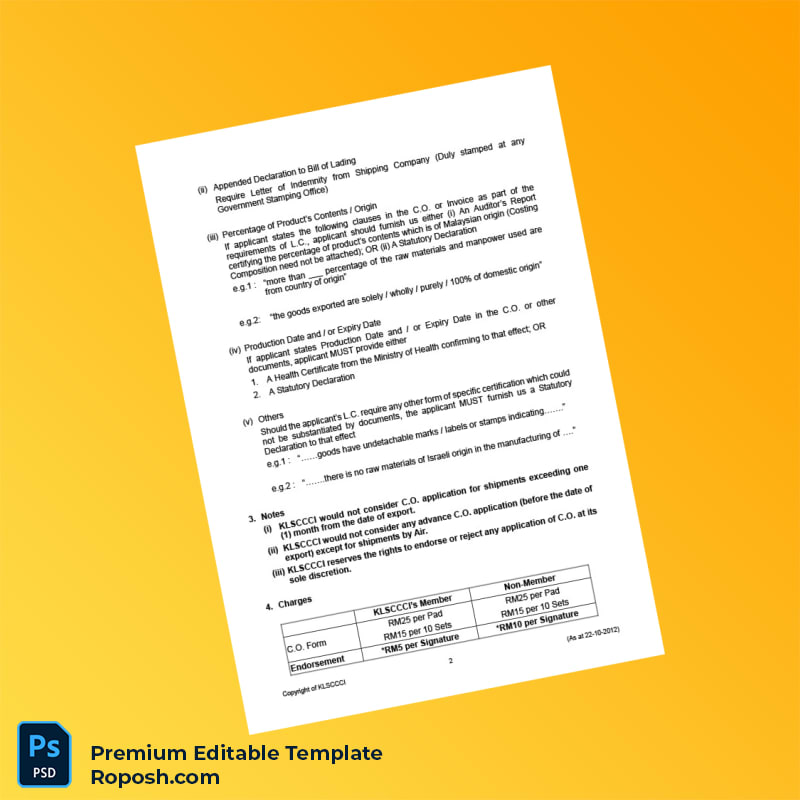 Customizable Malaysia Chinese Chamber of Commerce and Industry Certificate of Origin Editable Word & PDF Template 3 page