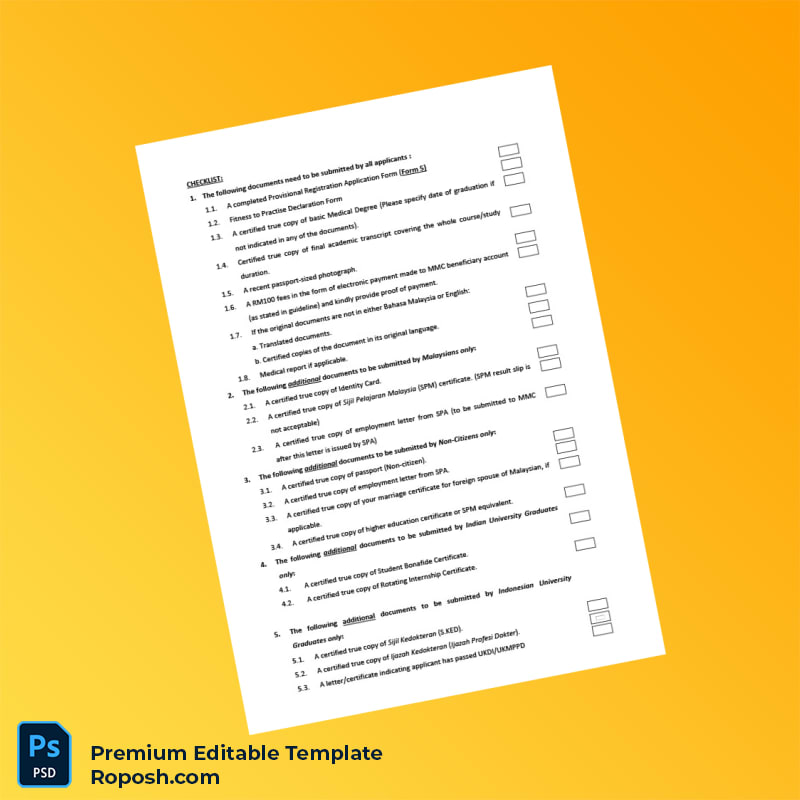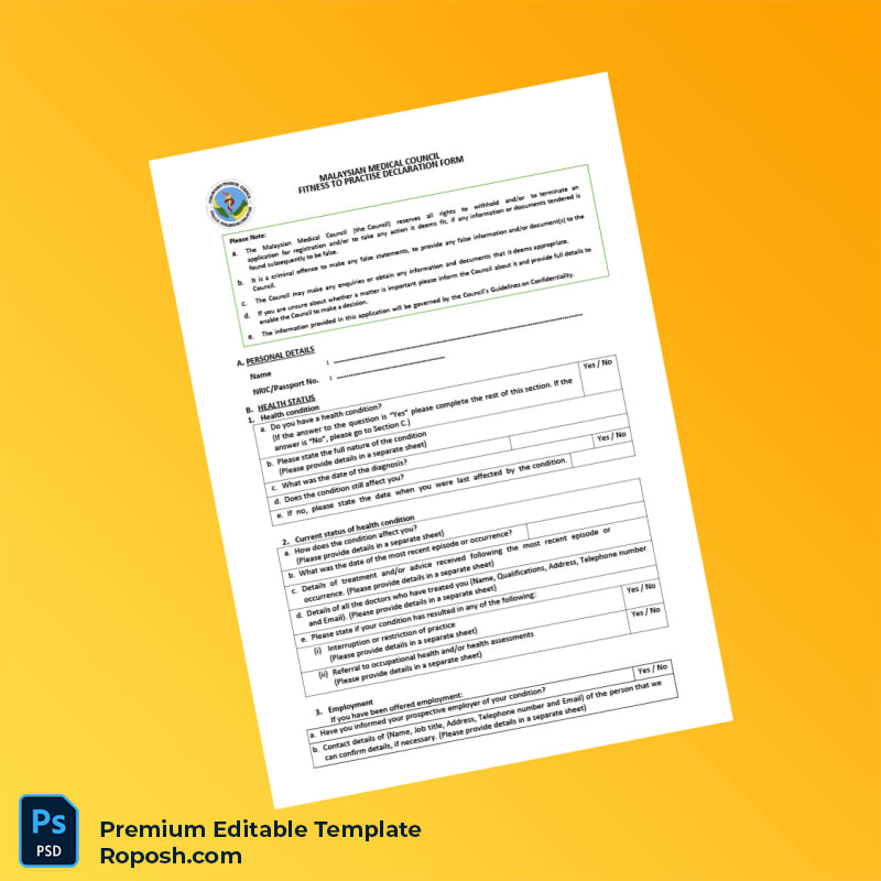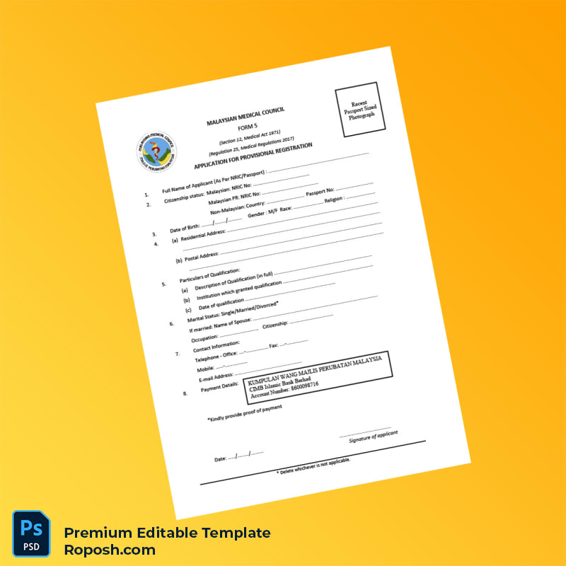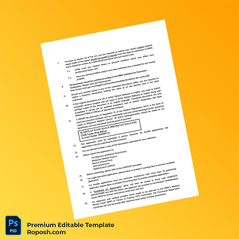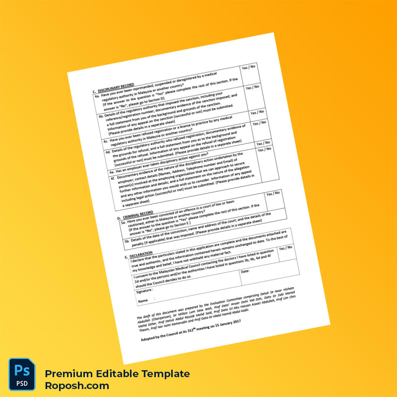 Stop worrying about processing delays and complicated paperwork. With this customizable Malaysia Malaysian Medical Council Provisional Registration Certificate Word & PDF Template, you take control of your professional credentials effortlessly. Download now to adapt your certificate to exact specifications and maintain your medical registration with confidence.