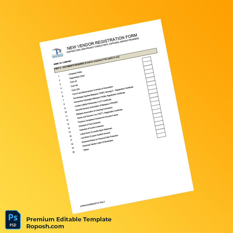Customizable Malaysia ProLintas Vendor Registration Form Editable Word & PDF Template 7 page