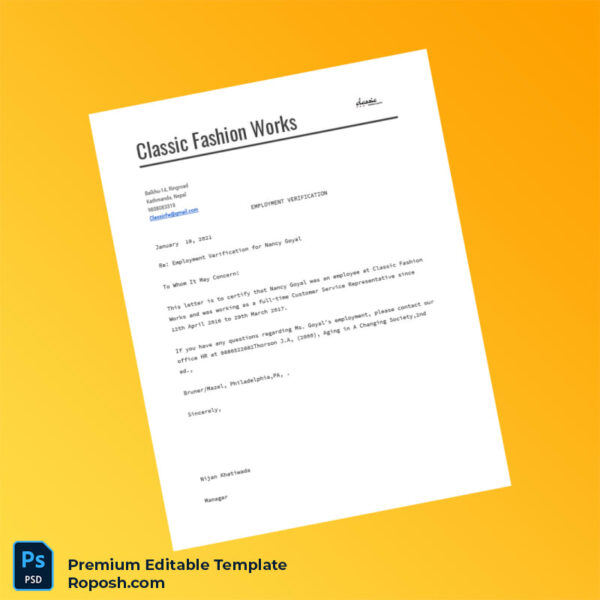 Streamline Your Employment Verification Process with Nepal Classic Fashion Works Template
