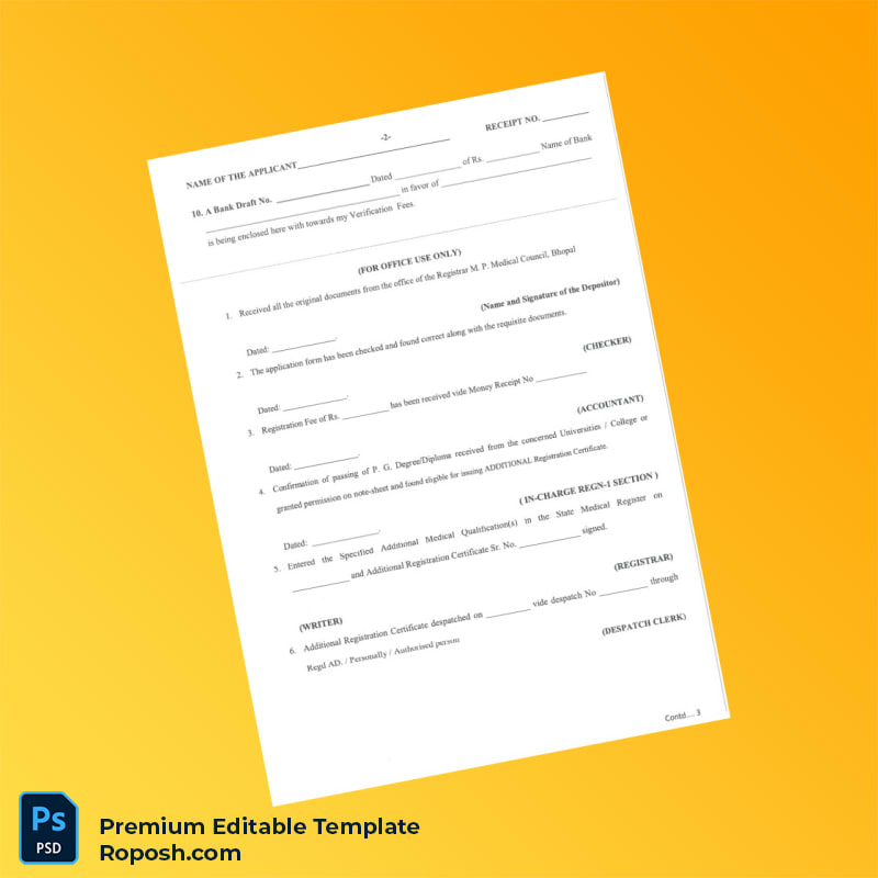 Streamline your medical registration process with the Nepal Medical Registration Receipt Word & PDF Template, a fully editable and customizable resource designed specifically for healthcare professionals and business owners. This essential registration certificate template allows precise modification of all document details, ensuring compliance and accuracy with Nepal’s regulatory standards.