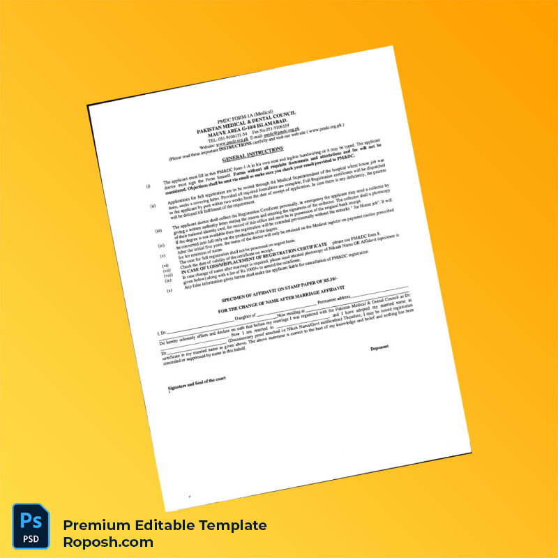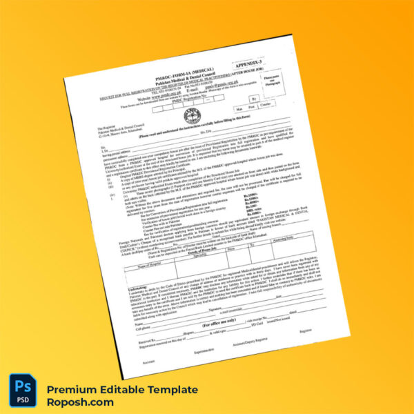 Obtaining or renewing your professional registration can be a complex and time-consuming task. The Pakistan Medical and Dental Council Registration Form Word & PDF Template offers a practical and efficient solution for healthcare professionals seeking an editable registration certificate that is simple to customize and ready for immediate use.