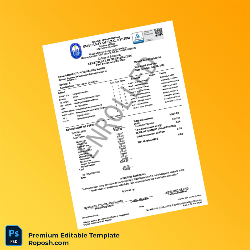 Ideal for school administrators, registrars, or educators in need of a rapid, dependable replacement or initial issuance of a college certificate of registration. This template solves critical issues such as document loss, expiration management, and administrative delays by providing a ready-to-use framework that saves time and resources.