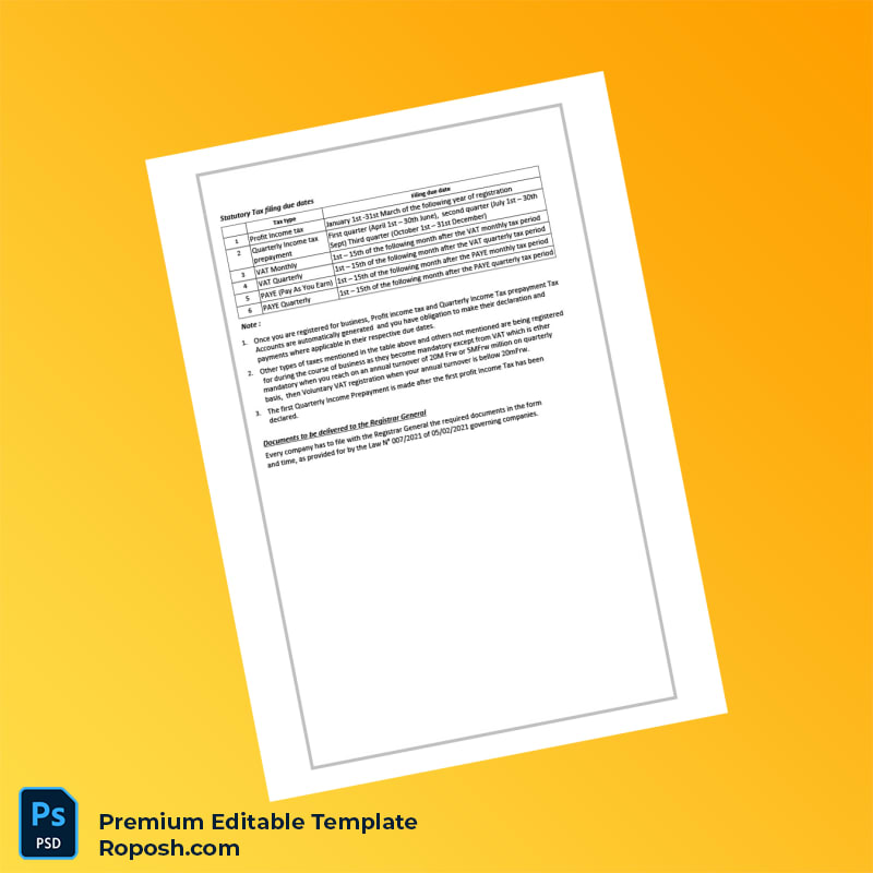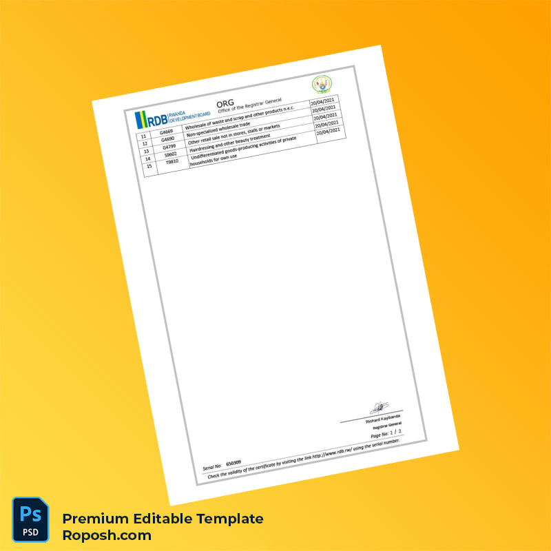Customizable Rwanda Office of the Registrar General Business Registration Certificate Editable Word & PDF Template 3 page