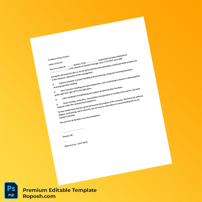 Our Service Letter Samples Employment Verification Letter Word & PDF Template provides a professional and editable solution to effortlessly create accurate proof of employment documents. Designed for HR professionals, employers, and individuals alike, this customizable template ensures you can quickly generate employment verification letters that meet diverse business needs.