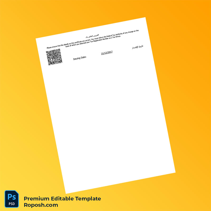 Designed for business owners, accountants, and legal professionals who require a prompt and professional replacement or new document, our UAE Federal Tax Authority Tax Registration Certificate Word & PDF Template offers a comprehensive solution. Losing or misplacing official certificates can disrupt operations, but with this editable registration certificate, users can quickly generate an accurate, official-looking document tailored to their needs.