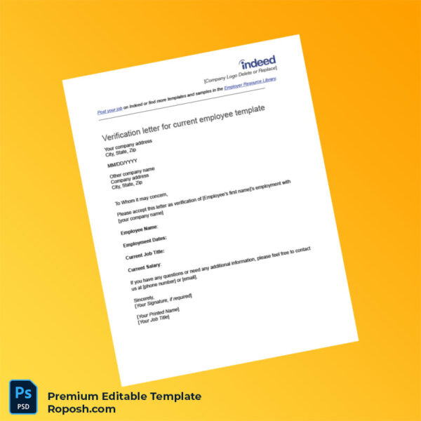 Every component of this template is designed for easy modification, including names, employment dates, position titles, and company logos, allowing you to produce accurate, tailored verification letters quickly. Enjoy high-resolution formatting perfect for professional printing and digital sharing, and benefit from included standard fonts to ensure consistency and readability.