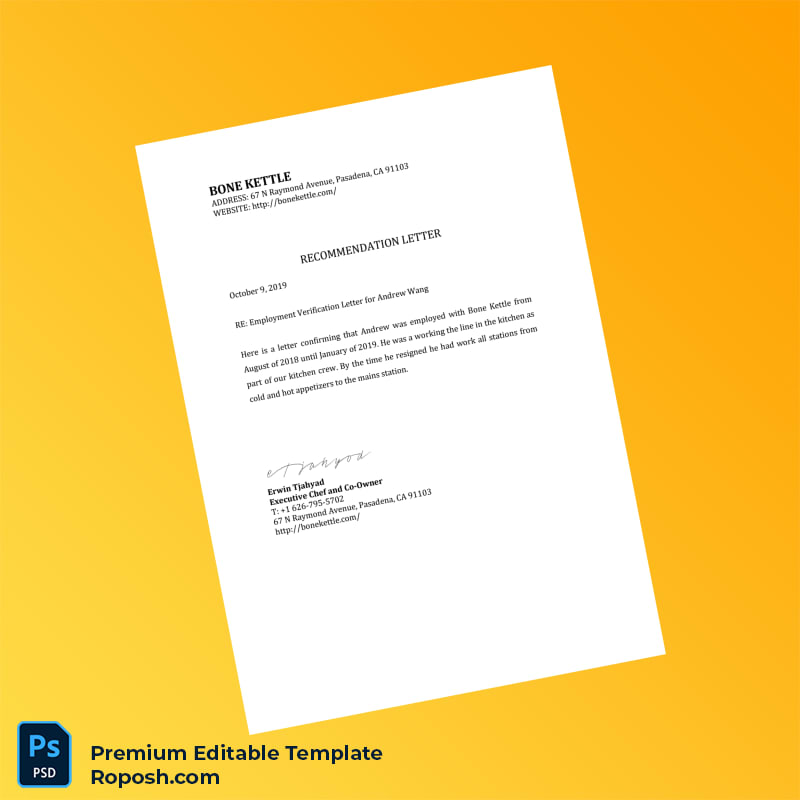 Customizable United States Bone Kettle Employment Verification Letter Word & PDF Template