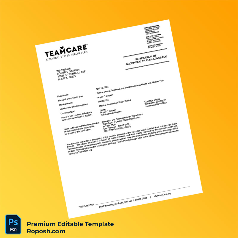 Customizable United States Central States Southeast and Southwest Areas Health and Welfare Plan Coverage Verification Letter Template