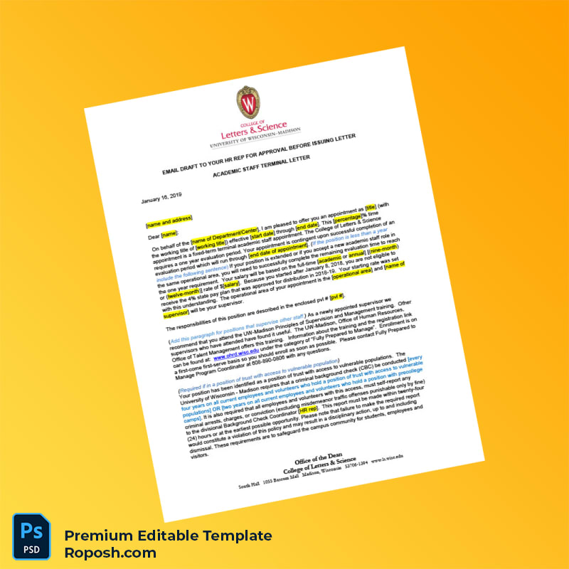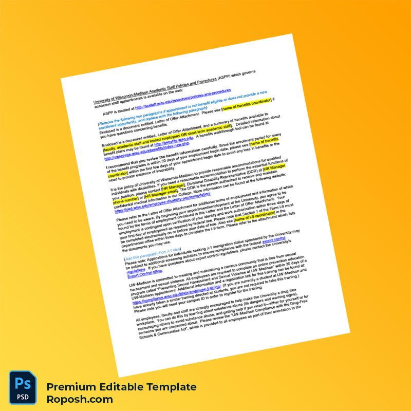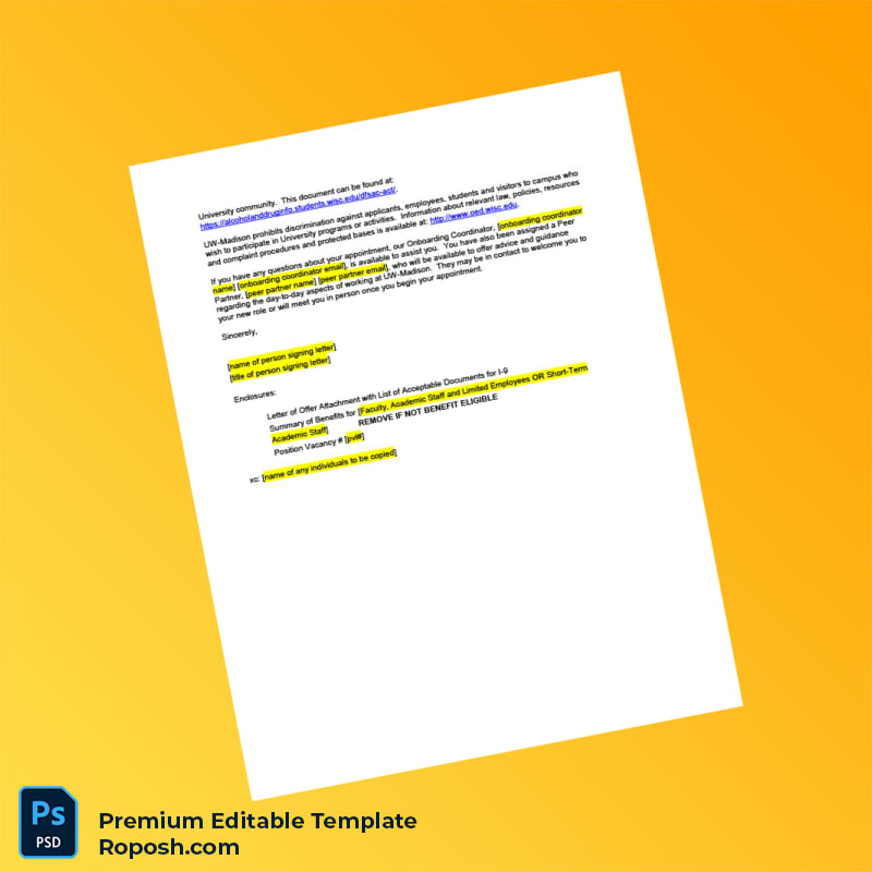 This template particularly serves HR personnel, freelance workers, and UW-Madison alumni who must swiftly provide employment confirmation for applications, loan processing, or government verifications. It alleviates the stress of creating a new document from scratch and mitigates the risk of errors often associated with manual drafting.