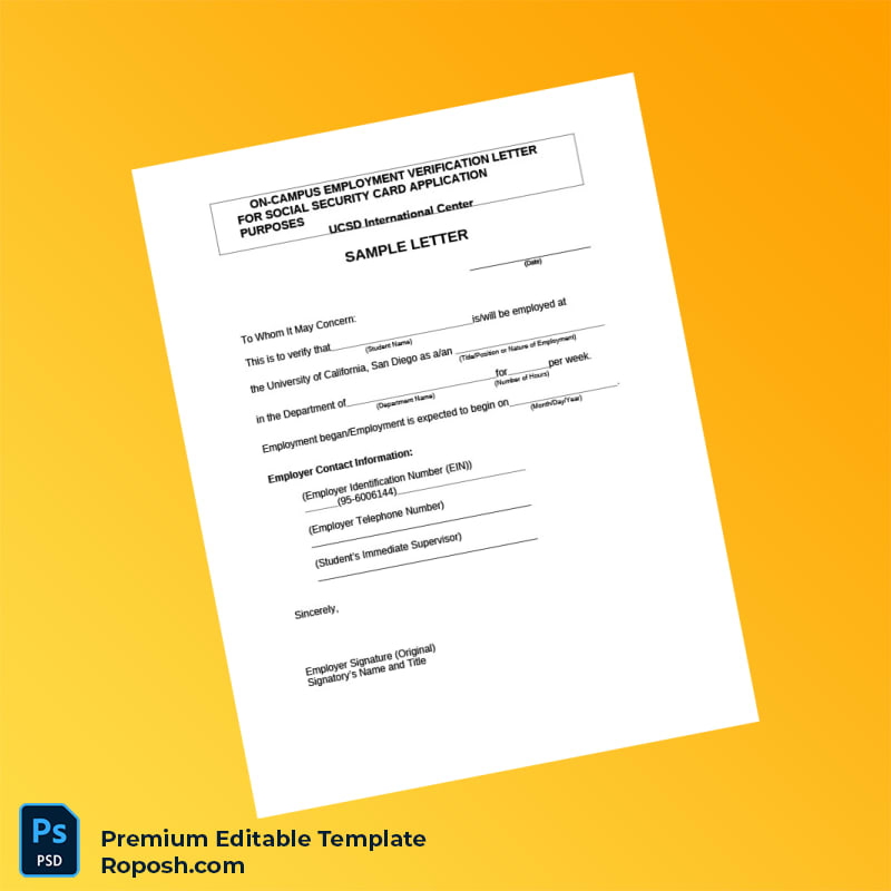 Don’t let verification delays impede your career or administrative processes. Choose the USA UCSD Employment Verification Letter Word & PDF Template for a trusted, editable, and professional employment verification solution made for today’s fast-paced demands. Download your copy and customize it effortlessly today!