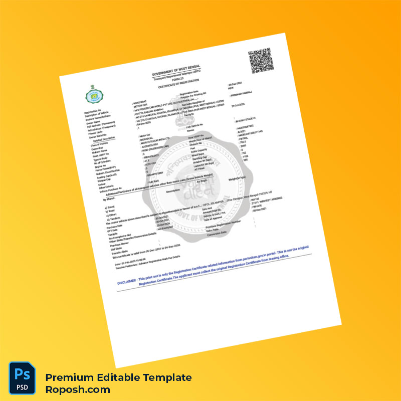 Streamline Your Business Registration with the West Bengal Transport Department Certificate of Registration Template