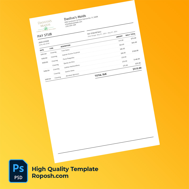 US Blue Sky Transportation LLC earning statement word and pdf template