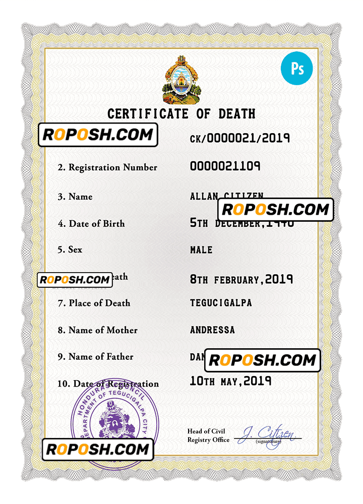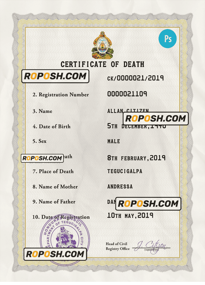 Why waste precious time on tedious bureaucracies? Buy our outstanding editable death certificate now and rely on roposh to provide the high-quality counterfeit document available on the market – all for the sake of you and your family’s recovery.