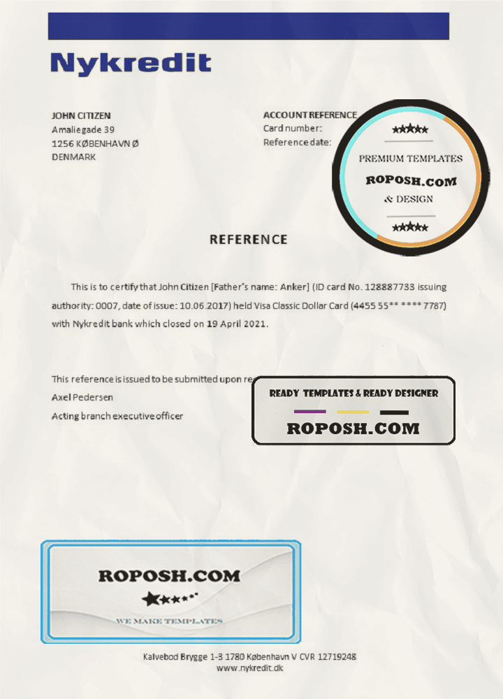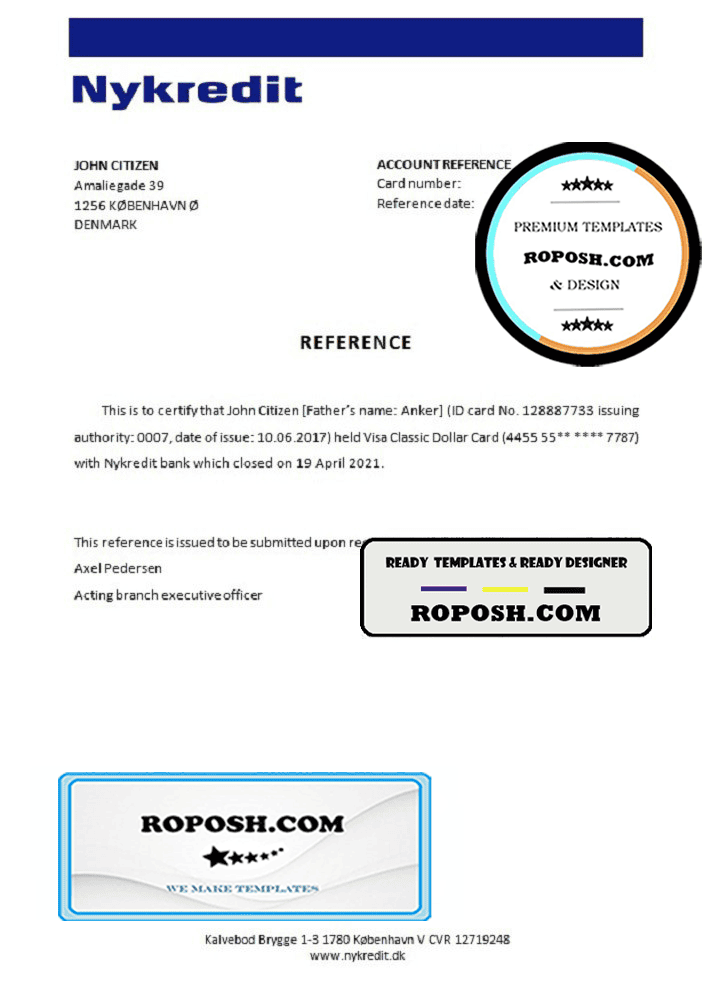 Denmark Nykredit bank account closure reference letter template in Word and PDF format