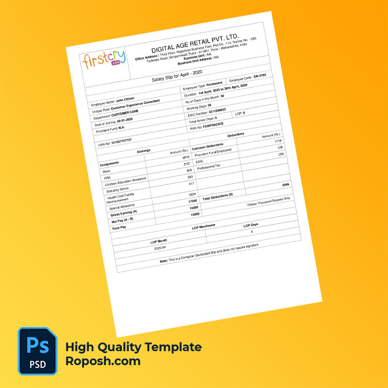Big Tree Resource Management Pvt Ltd payslip word and pdf template