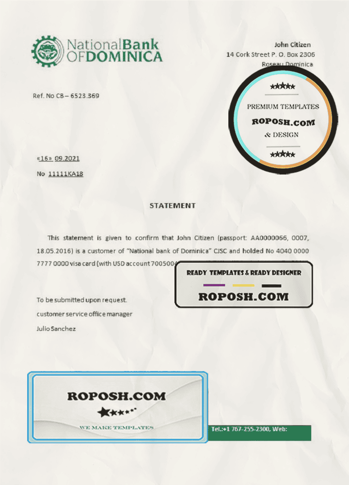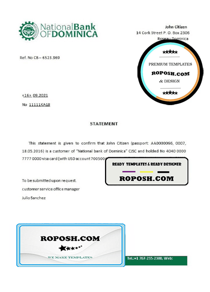 Dominica National Bank of Dominica bank account closure reference letter template in Word and PDF format