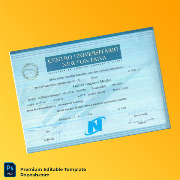 Need a reliable Brazil Centro Universitário Newton Paiva Bachelor of Psychology Diploma Template for a quick project? Finding a high-quality, blank copy can be frustrating and time-consuming, especially when accuracy and presentation matter most for your graduation certificate template needs.
