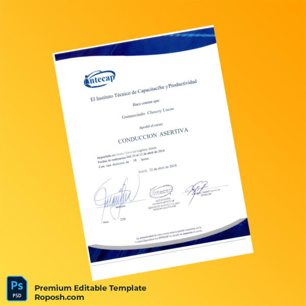 Are you struggling to find a high-quality Guatemala INTECAP Course Completion Certificate in Assertive Driving template for your project or verification needs? Getting a blank, editable diploma template that looks authentic yet professional can often be a challenging and time-consuming task.