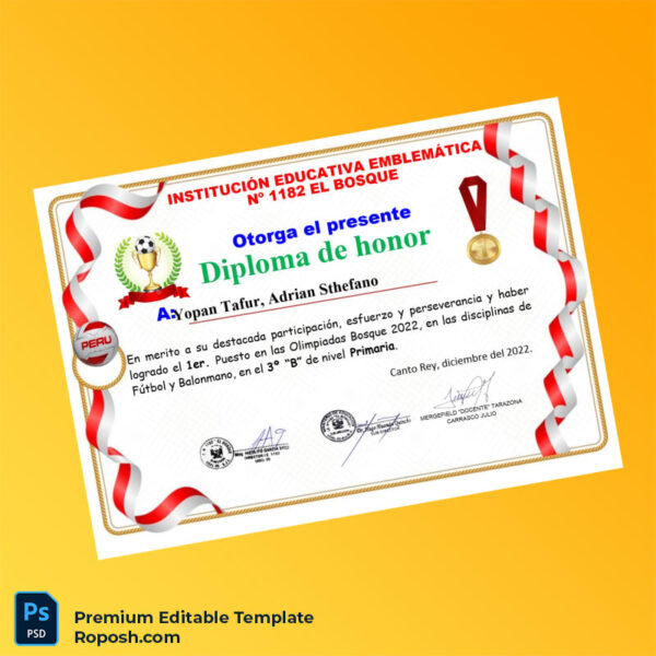 Editable Peru Institución Educativa Emblemática No 1182 El Bosque Diploma of Honor Template – Fast Edit