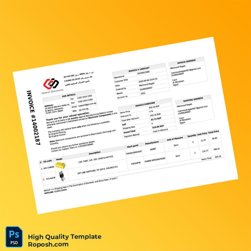 Egypt GS Company Invoice Template in Word and PDF Formats