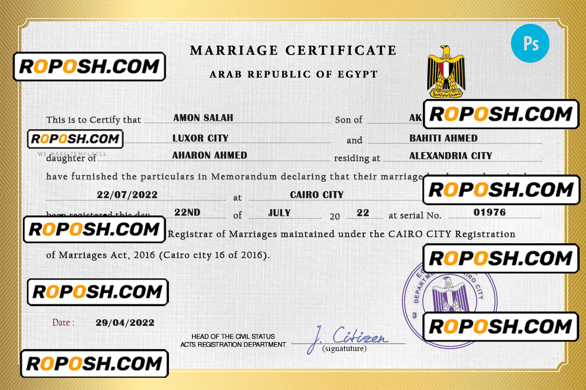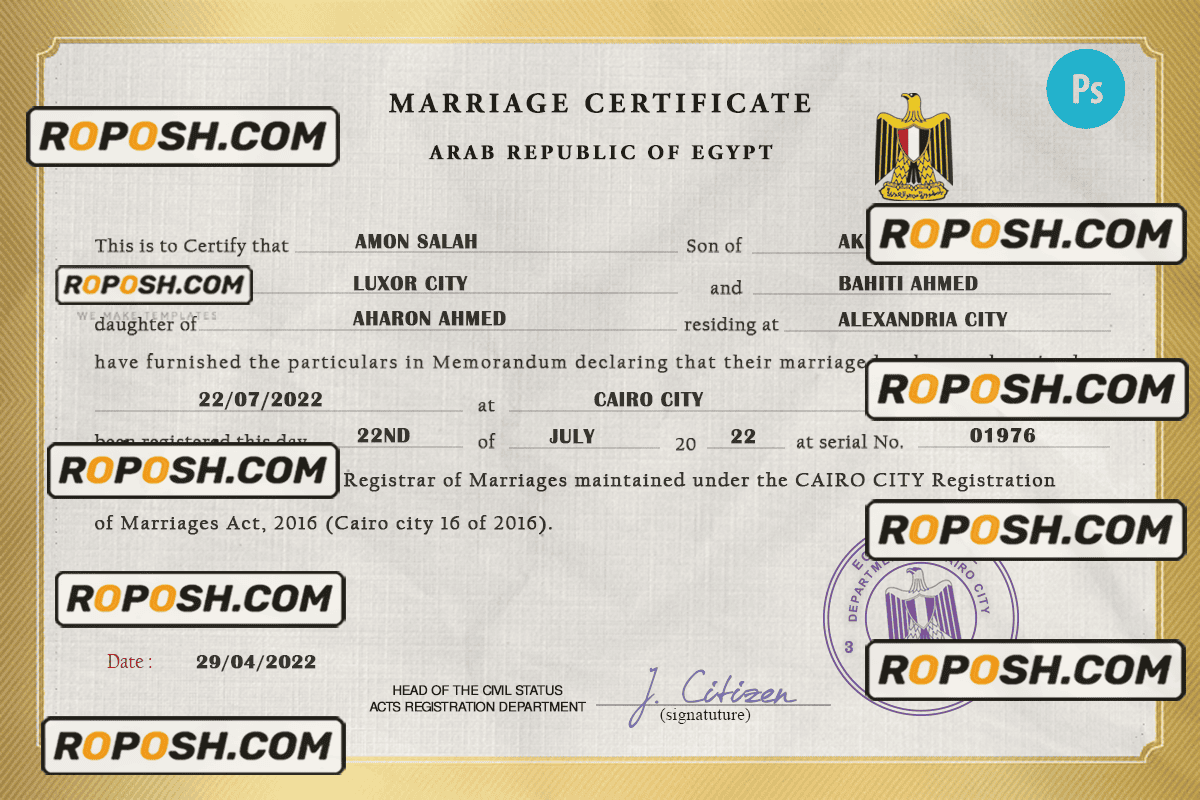 – Join our growing list of satisfied customers today by getting your hands on our blank Egypt marriage paper certificates.