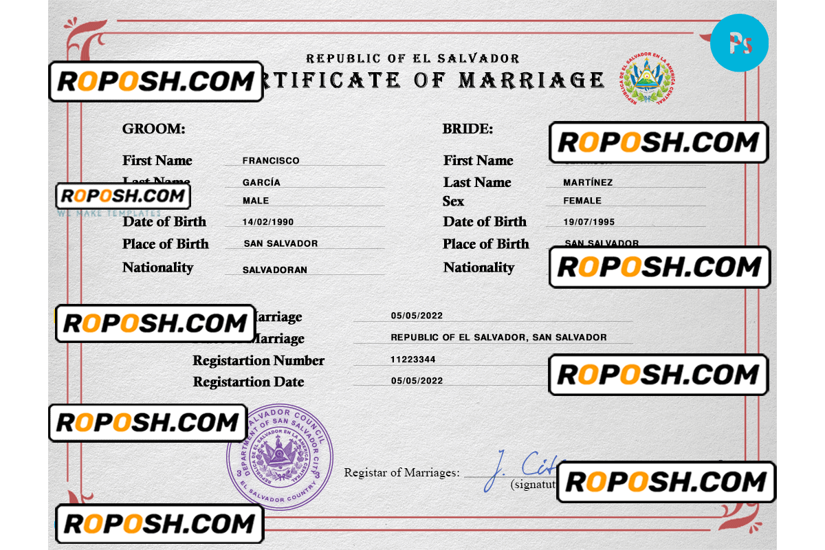 – Join our growing list of satisfied customers today by getting your hands on our blank El Salvador marriage paper certificates.